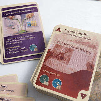 The game is deliberately co-operative. All players win or lose together, mirroring the collective nature of real scientific research. Players must manage resources, design experiments, respond to constraints, and fend off real-world threats and sly saboteurs that can derail their work. Across four narrative episodes, players: