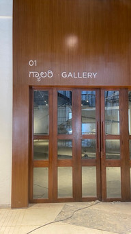Typography choices were guided by linguistic priority and spatial harmony. Kannada was treated as the primary visual language, reflecting the gallery’s cultural context and ensuring prominence in wayfinding. Baloo Tamma was selected for Kannada for its rounded letterforms, inherent warmth, and high legibility without reliance on stylised variants. The English typeface was chosen to align structurally and visually with this character, resulting in the use of Gotham, whose geometric clarity complements the Kannada forms without competing with them.